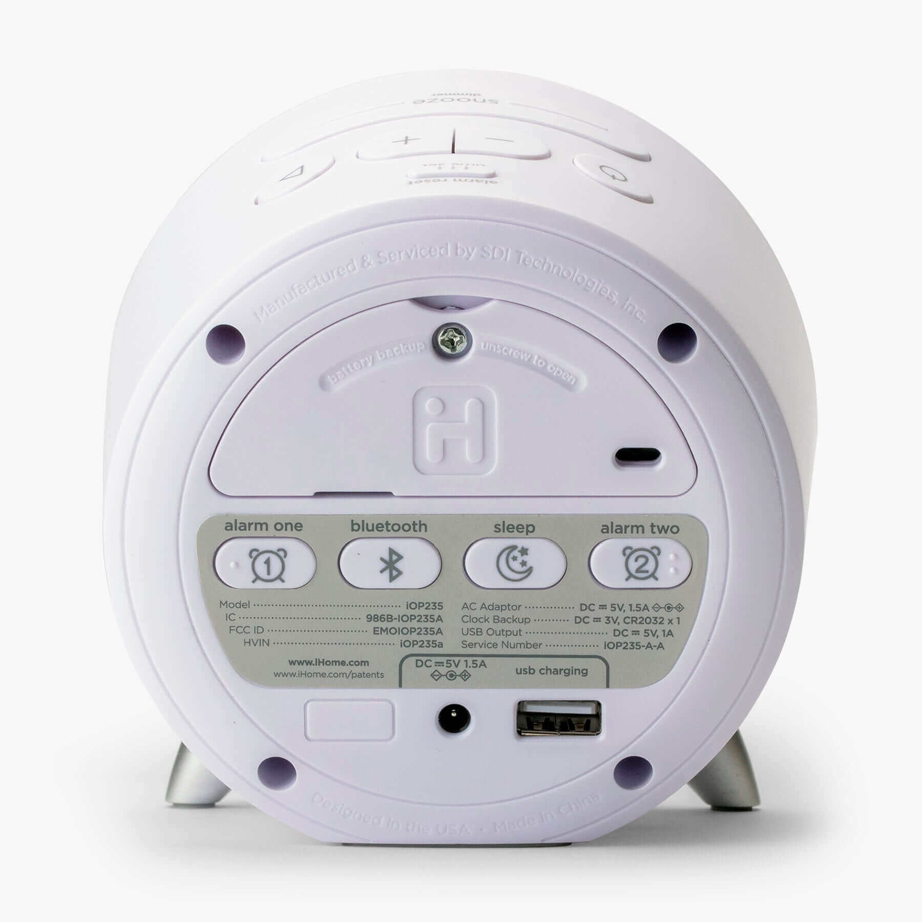 he dimmable backlit display has 4 adjustable brightness levels to suit the lighting in your room, too. Plus, this alarm clock with USB charger lets you power up your devices while you sleep. Includes a 100V - 240V universal voltage AC adapter, and the battery backup system ensures that your time and alarm settings are maintained in the event of a temporary power failure. If you are shopping for alarm clocks for bedrooms, the iHome iOP235 makes a great addition to any bedroom, home office, or dorm room.